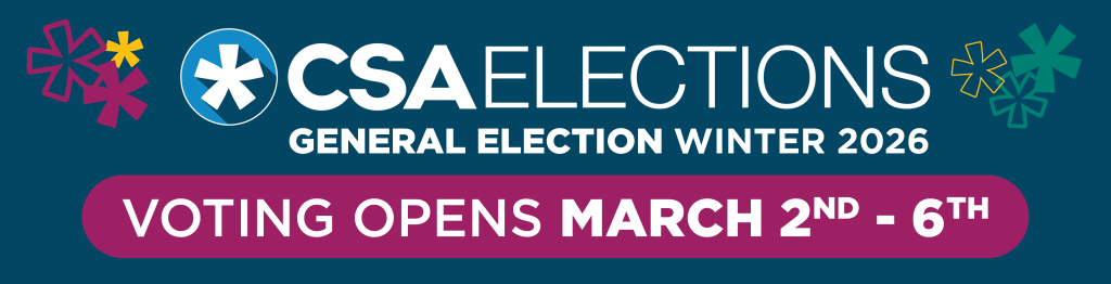 As of March 13, 2026: Presidential candidate Zaid Khan, VP Academic candidate Ujala Batla, VP Internal candidate Muhammad Almas and VP External candidates Husain Iqbal & Pawandeep Singh, have each accumulated at least 100 demerit points due to infractions and have been disqualified from the Winter 2026 General Election in accordance with CSA policy.